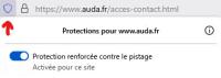 (NOTA : En cas de problème d'affichage du formulaire de contact ci-dessous (problème connu rencontré sous Firefox), désactiver la protection renforcée (cf ci-dessous), essayer avec Chrome ou Edge ou envoyer directement un mail à contact@auda.fr)